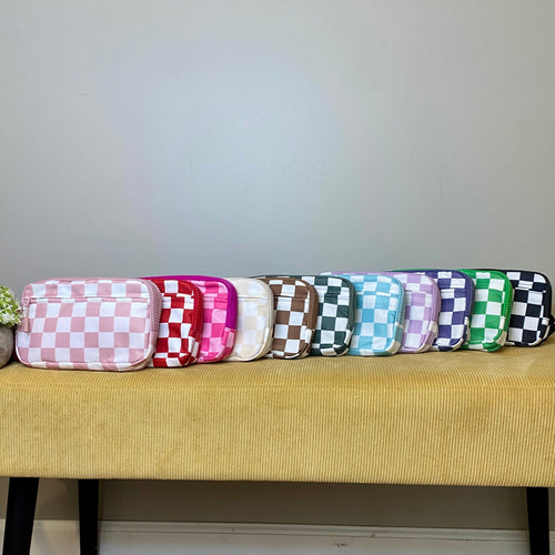 The Roni Nylon Crossbody - Checkered Colorful White