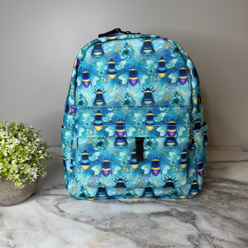 Mini Backpack - Teal Floral Bee